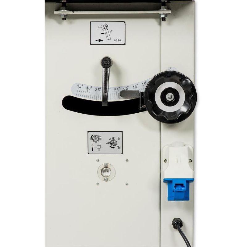 - The spindle hood is cast alloy with long, fully adjustable finger style fences. It, comprehensive work hold-downs and a 100mm dust outlet. A second 100mm dust outlet is located on the stand directly below the cutter block. With the two connected to a suitable extractor waste removal is highly efficient. The machine is supplied with a simple sliding table with a mitre fence and work clamp as standard.