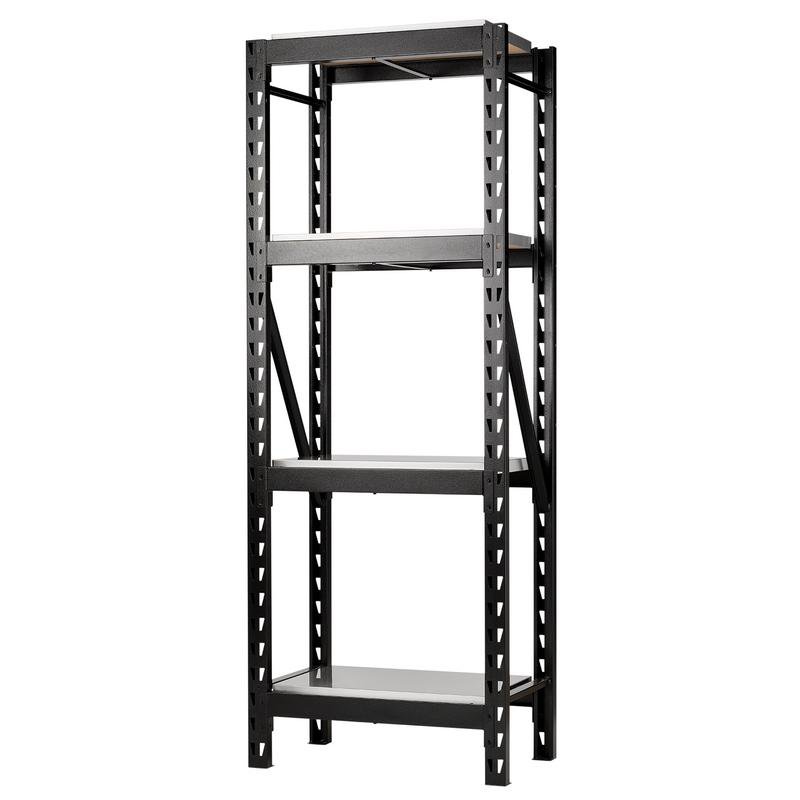 - Choose between hardwood or stainless steel shelving options to customise your storage space effortlessly with our modular 21-piece 750mm 4-tier racking solutions. Made from heavy-duty steel, the racking is coated with an industrial powder finish, ensuring protection against scratches, wear, and corrosion.