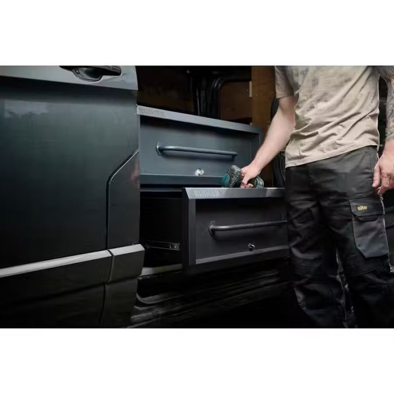 - Protect your tools with heavy-duty BUNKER boxes designed for in-vehicle storage. These boxes securely lock and bolt to your van’s floor, providing protection against theft whilst keeping your tools organised and maximising cargo space.