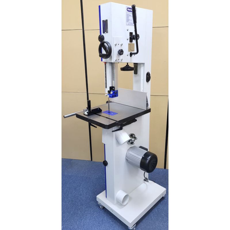 A bandsaw with a solid one-piece frame constructed using a heavy gauge steel. Powered by an 1800w induction motor and able to make re-saw cuts of up to 330mm deep. Twin extraction ports keep the inside of the cabinet free of dust.