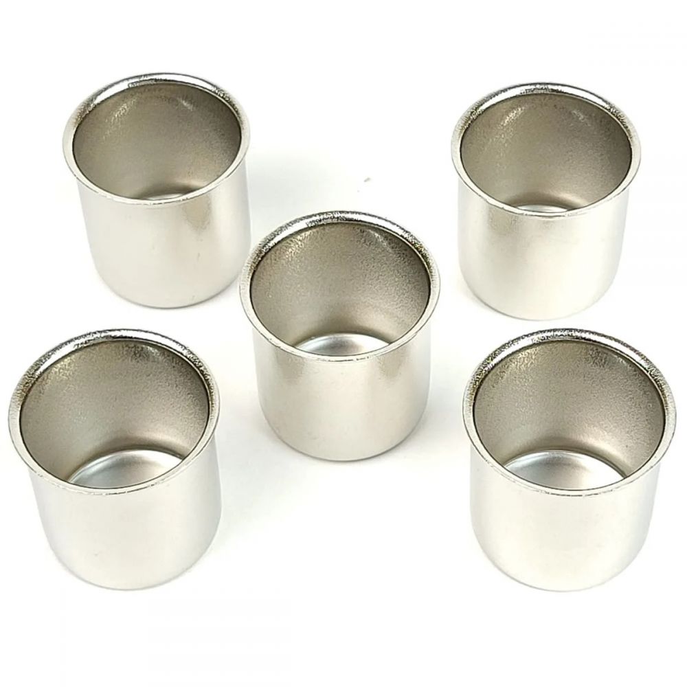 - Nickel finish candle cups, pack of 5.