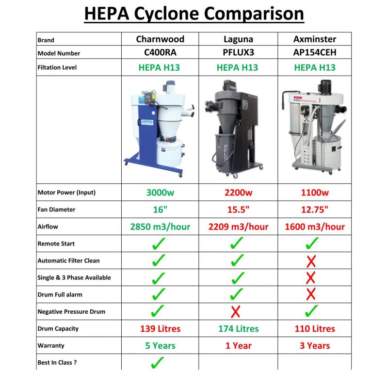 Charnwood Pro C400RA 4hp HEPA Cyclone Dust Extractor with Remote Start and Auto-Clean 240v