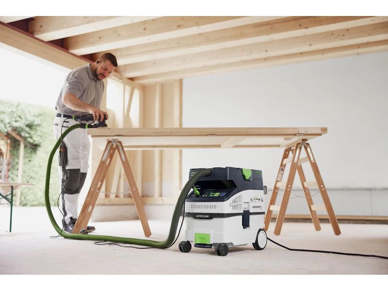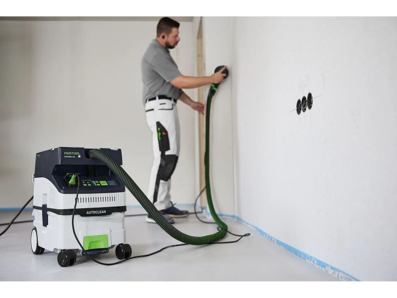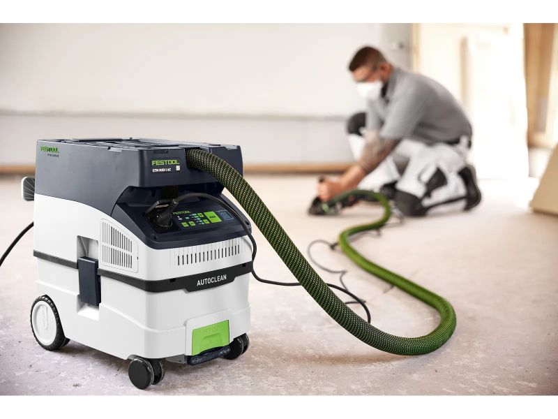 The CTM MIDI AC compact dust extractor boasts technically advanced AUTOCLEAN main filter cleaning. This keeps the filter clear and ensures consistently high suction power, longer working intervals and a longer filter service life with lower maintenance effort. Its low weight and compact dimensions make it ideal for service and installation work. With lots of innovative details, such as the smooth suction hose and touch operation. Integrated Bluetooth® technology starts the mobile dust extractor automatically via the Bluetooth® battery pack or the optional remote control. The internal hose holder, the Systainer T-LOC coupling and the practical cord holder ensure tidiness and speed.