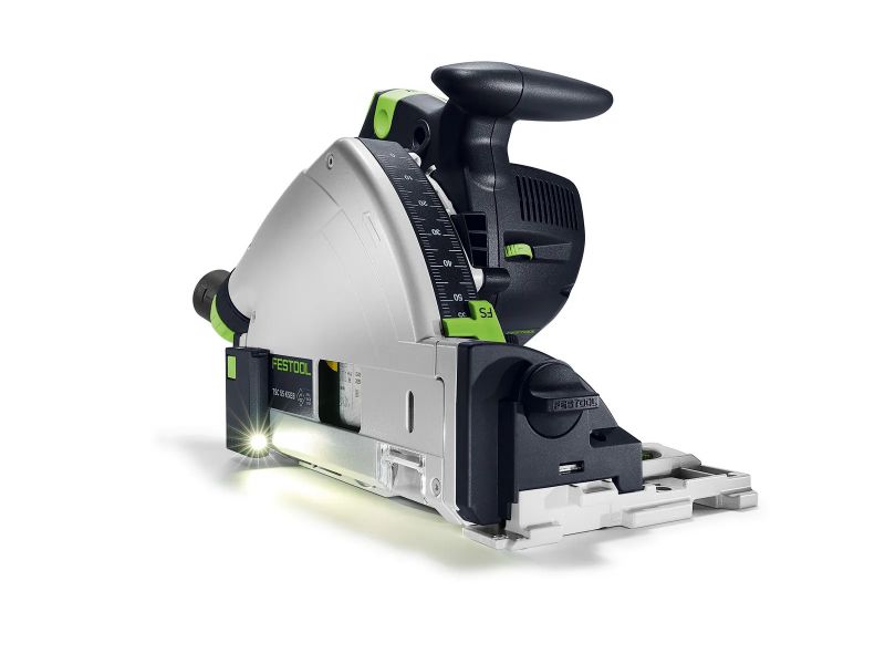 • Optimal illumination of the entire sawing area from the right side – including the rear plunge-cut area, ideal for precise cut-outs on position.