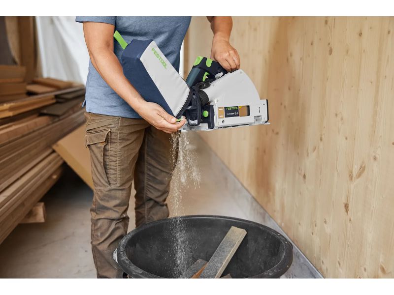 With the dust collection bag, you can work with reduced dust, even without a connected extractor. What's more, you retain the full mobility and compactness of your cordless saw – for cleaner air and less post-processing, all while maintaining complete flexibility. The bag can be attached with a single hand movement, captures dust and chips directly at the point of exit, and can be emptied easily and completely via the opening flap without needing a zip. You don’t need to detach it from the saw either for emptying or transport. This allows you to work seamlessly and get started whenever you wish.