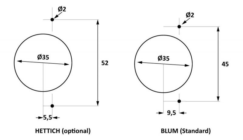 - drilling pattern Blum, conversion to Hettich Drilling pattern with optional Hettich head possible