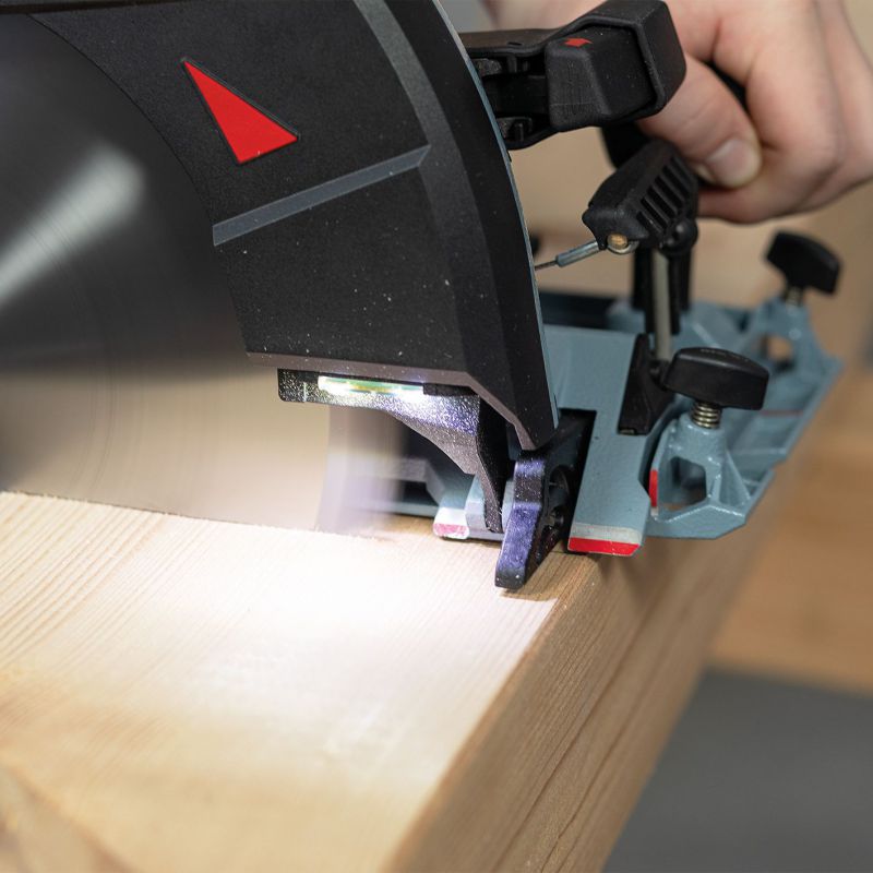 - It is no longer necessary to unscrew the riving knife – the FLIPPKEIL offers you optimum user-friendliness and safety when plunge cutting.