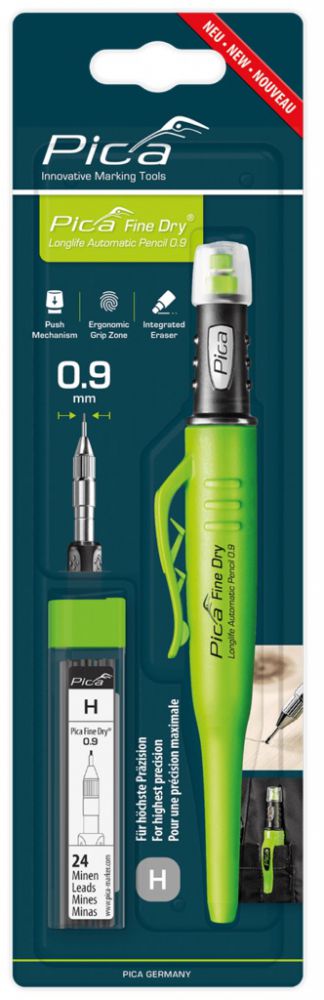 - The special lead diameter of only 0.9 mm is ideal for fine and precise marking, without sharpening