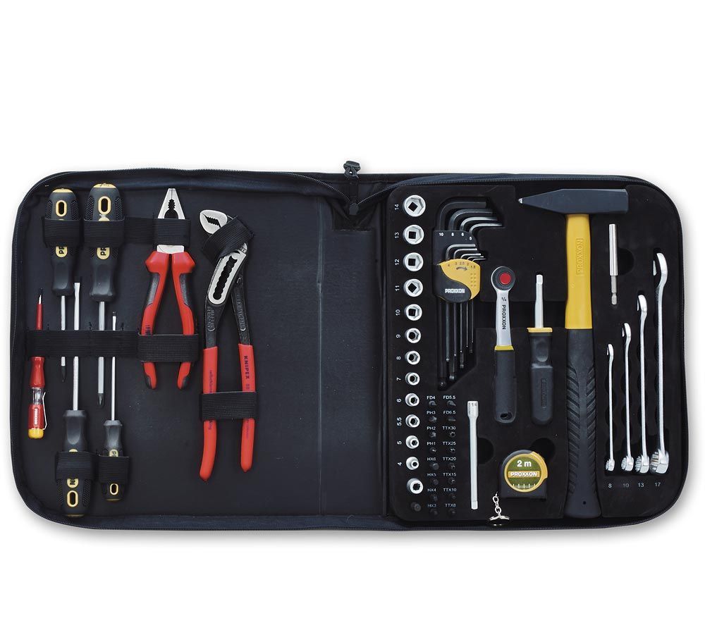- An endlessly useful, compact 48 piece tool kit to keep in the workshop, home or car. Packed inside a padded portable tool pouch. Well organised, with every tool in its proper place inside the pouch, each tool is easily located, clearly marked and safely stored.