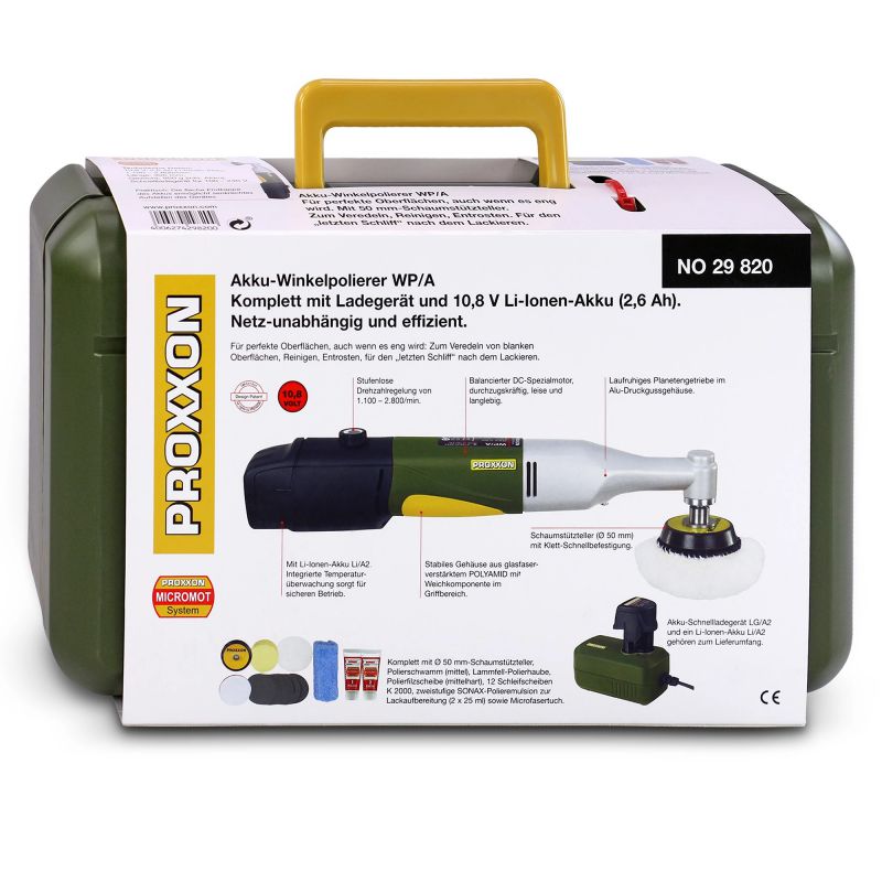 Proxxon Cordless Angle Polisher WP/A 10.8v with Case and Accessory Kit