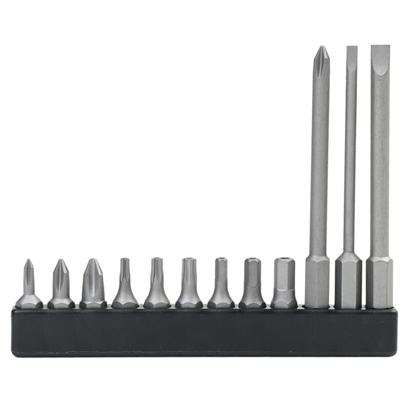 - 12 standard bits of industrial quality: nine bits of 25mm (PH 0 - 1 - 2, HX 3 - 4 - 5, TX 10 - 15 - 20) as well as 3 bits in extra-long version of 80mm (PH 1 - FD 3 - 5,5)
