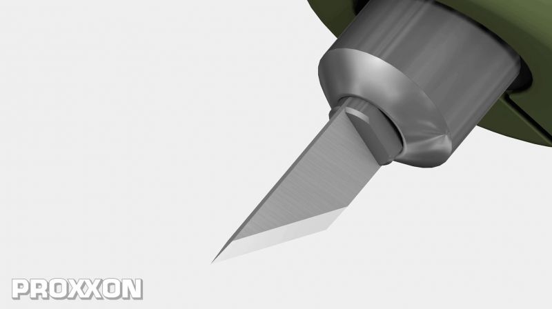 - Complete with mains adapter, 2 collets and 40 scalpel blades in a practical storage box for small parts.