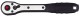 • Fine tooth drive: Several of the 72 teeth engage simultaneously for transferring maximum torque. Reverse lever for ratcheting direction. Quick-release button for releasing sockets instantly. Head and shaft forged from one piece of CrV steel. Double nickel-plated with matt chrome-plated finish. Grip of oil and acid-resistant TPR (thermoplastic rubber) with practical hole for hanging up.