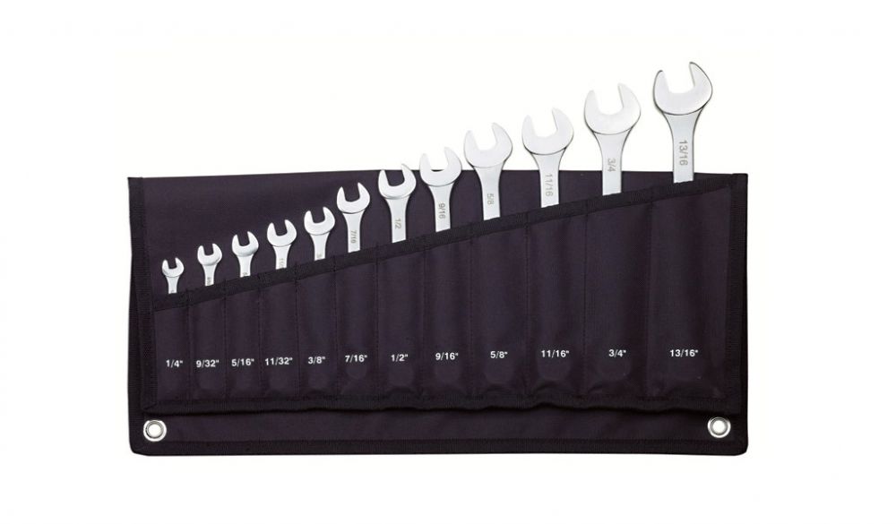 • Spanner sizes: 1/4'' - 9/32'' - 5/16'' - 11/32'' - 3/8'' - 7/16'' - 1/2'' - 9/16'' - 5/8'' - 11/16'' - 3/4'' and 13/16''. With durable laser marking and large, clearly readable imperial sizes. Polished heads, slim and thin-walled. Optimal surface protection (double nickel-plating and single matt chrome plating) with comfortable, smooth finish.