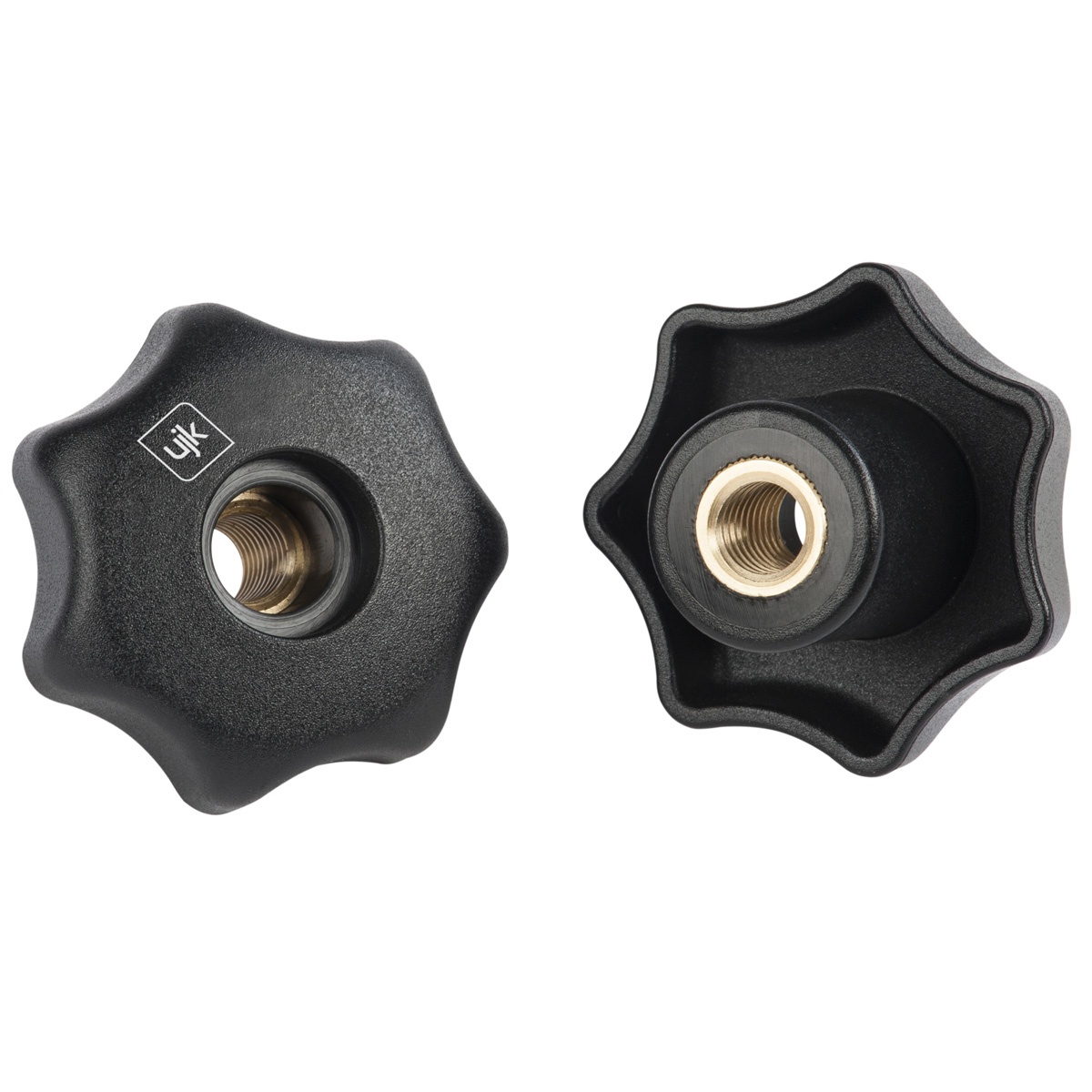 - These are nylon, shatterproof star knobs with female threaded brass inserts. They make a great addition to home-built jigs and fixtures or a replacement for a standard or broken knob on machinery.
