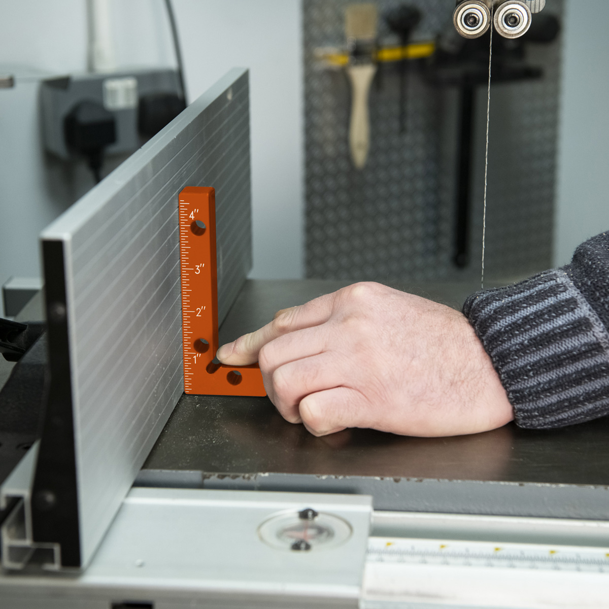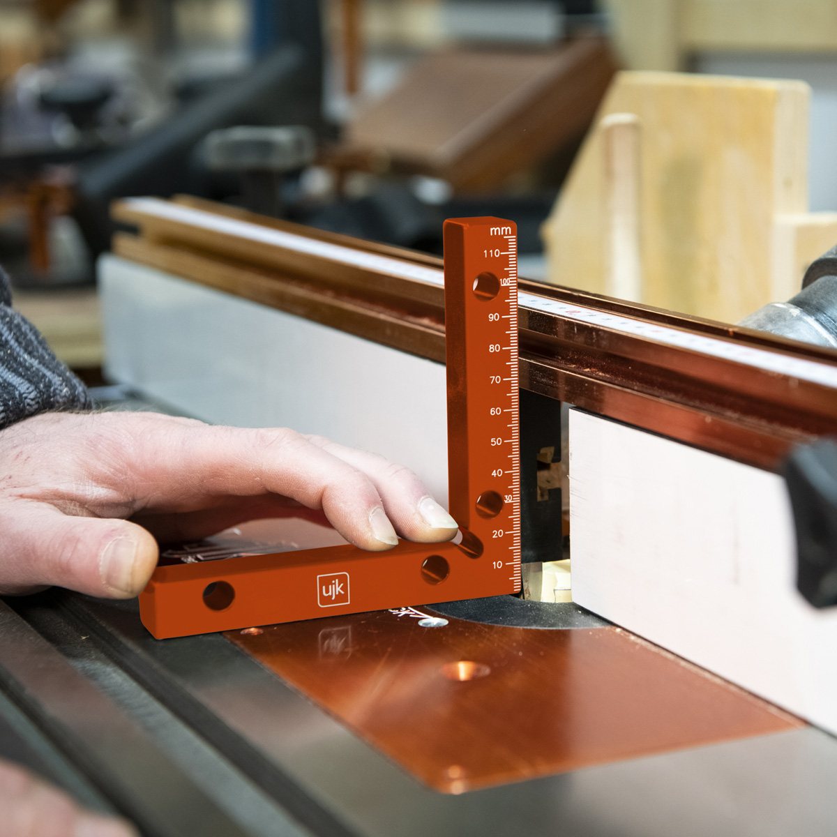 - The UJK Assembly Squares are indispensable tools that are the cornerstone for creating perfect right angles and ensuring your projects are squared and true. The UJK Assembly squares streamline your setup, ensuring saws, bandsaws, and fences are at precisely 90°. The graduated arm, marked in both metric and imperial, starts at the corner, doubling as a height gauge. Clamp them to secure drawer or box corners, on internal and external angles. The notched corner ensures full contact for accuracy, while the holes accommodate UJK Fence Clamps for a seamless clamping. British Made from high-quality aluminium, these squares are not only durable but also engineered for longevity, ease of use and versatility.