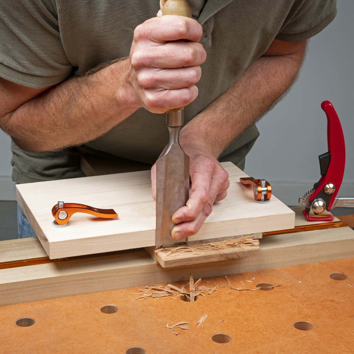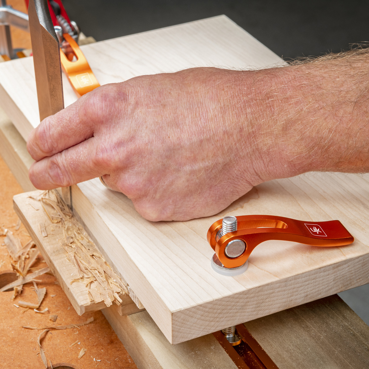 - Screw the lever down until it is touching the top of the fixture/fence etc. Pushing the end of the lever down, applies considerable clamping force. To release the fixture, simply lift the lever.