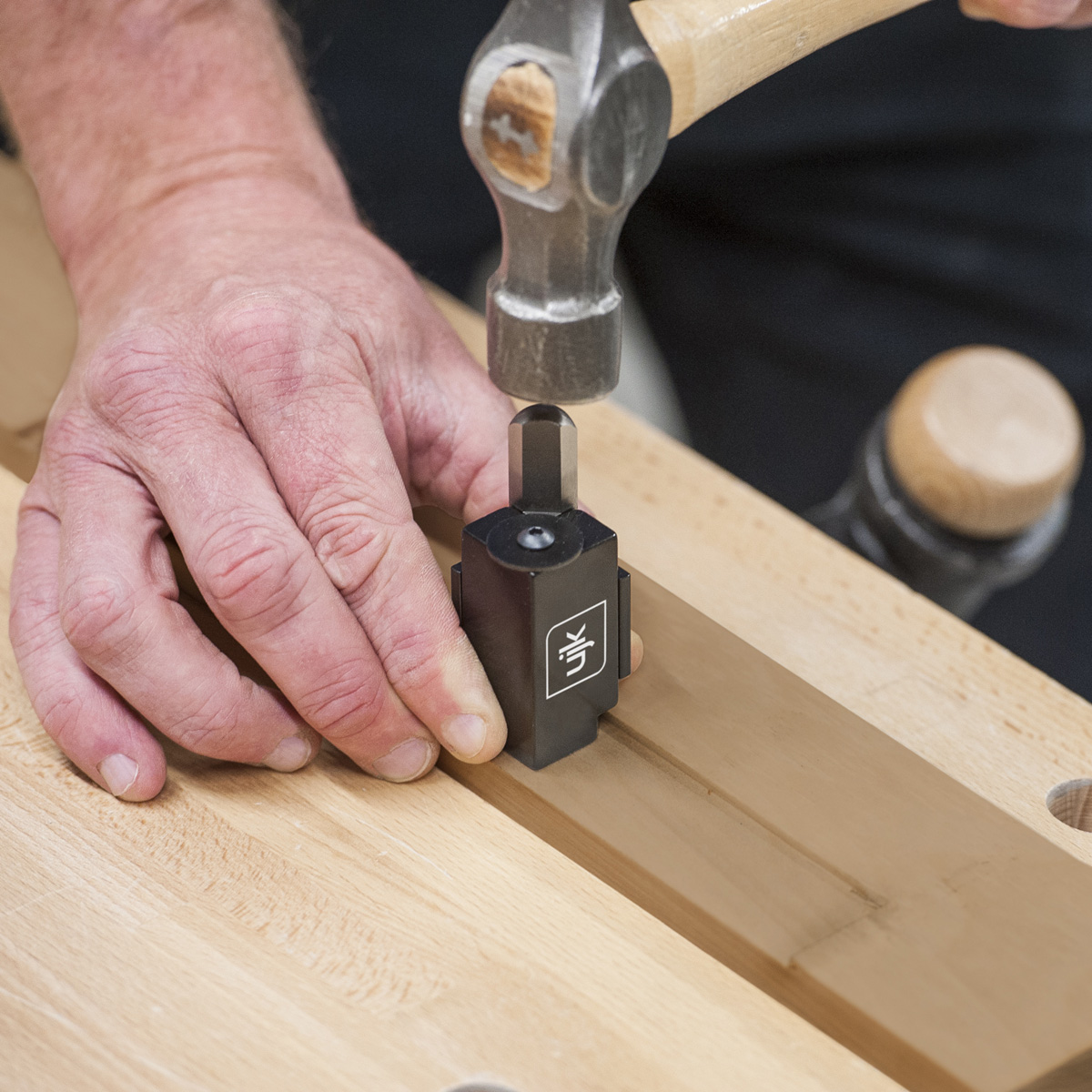 - The blade is tungsten steel, sharpened to a perfect 90° corner. The steel body has locating lugs, which automatically align the chisel. A sharp tap with a hammer and the spring loaded chisel cleanly cuts the corner. Pare away the little piece of waste for a perfect cut every time.