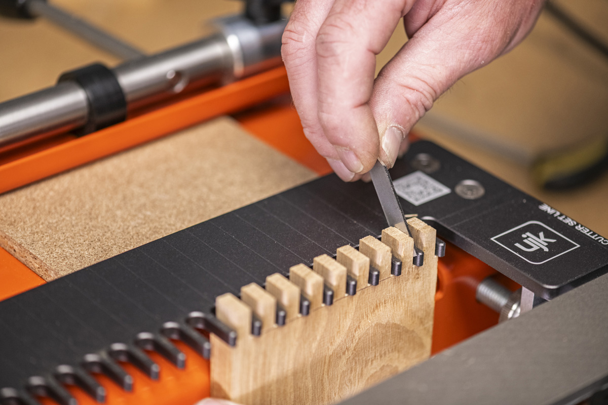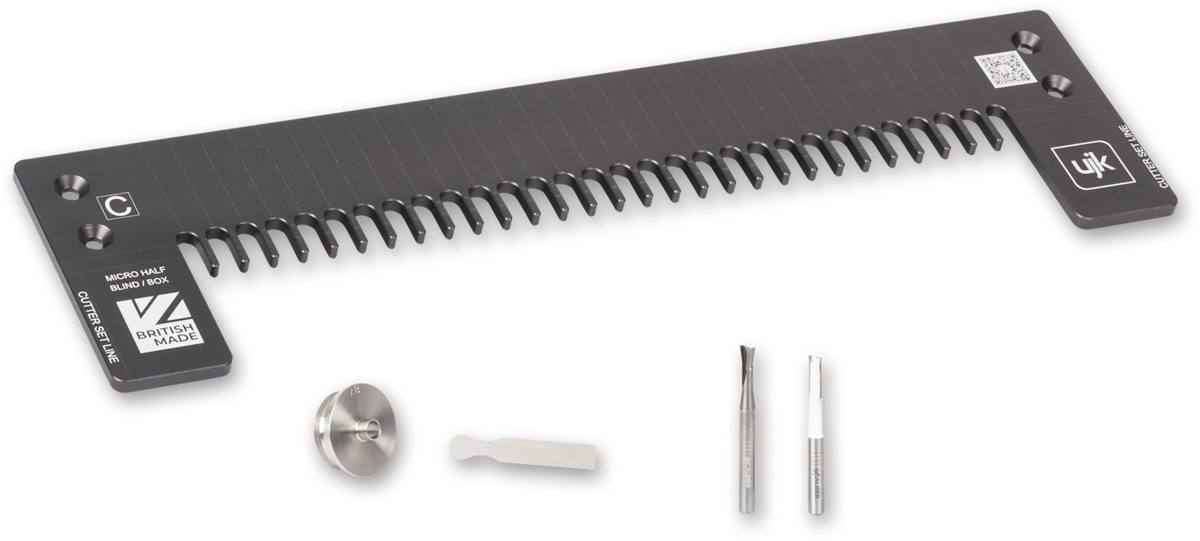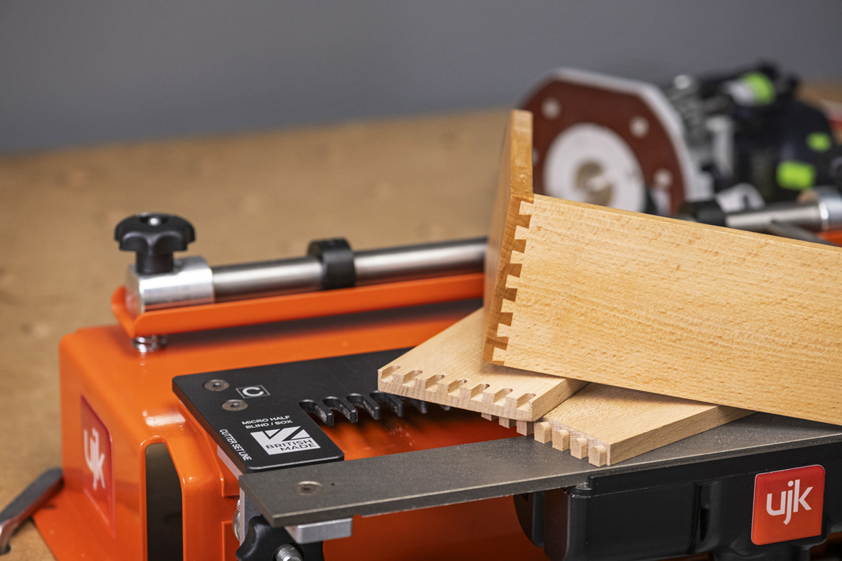 - The UJK Universal Dovetail Jigs finest accessory! British Made and designed for the meticulous joiner, demanding precision for small intricate joints. Ideal for creating the finest 6mm half-blind dovetails or box joints, it's perfect for small boxes or intricate drawers that require a professional finish. The UJK Dovetail Jig Fine Pitch Comb is built for durability and precision, creating professional fine dovetail joints.