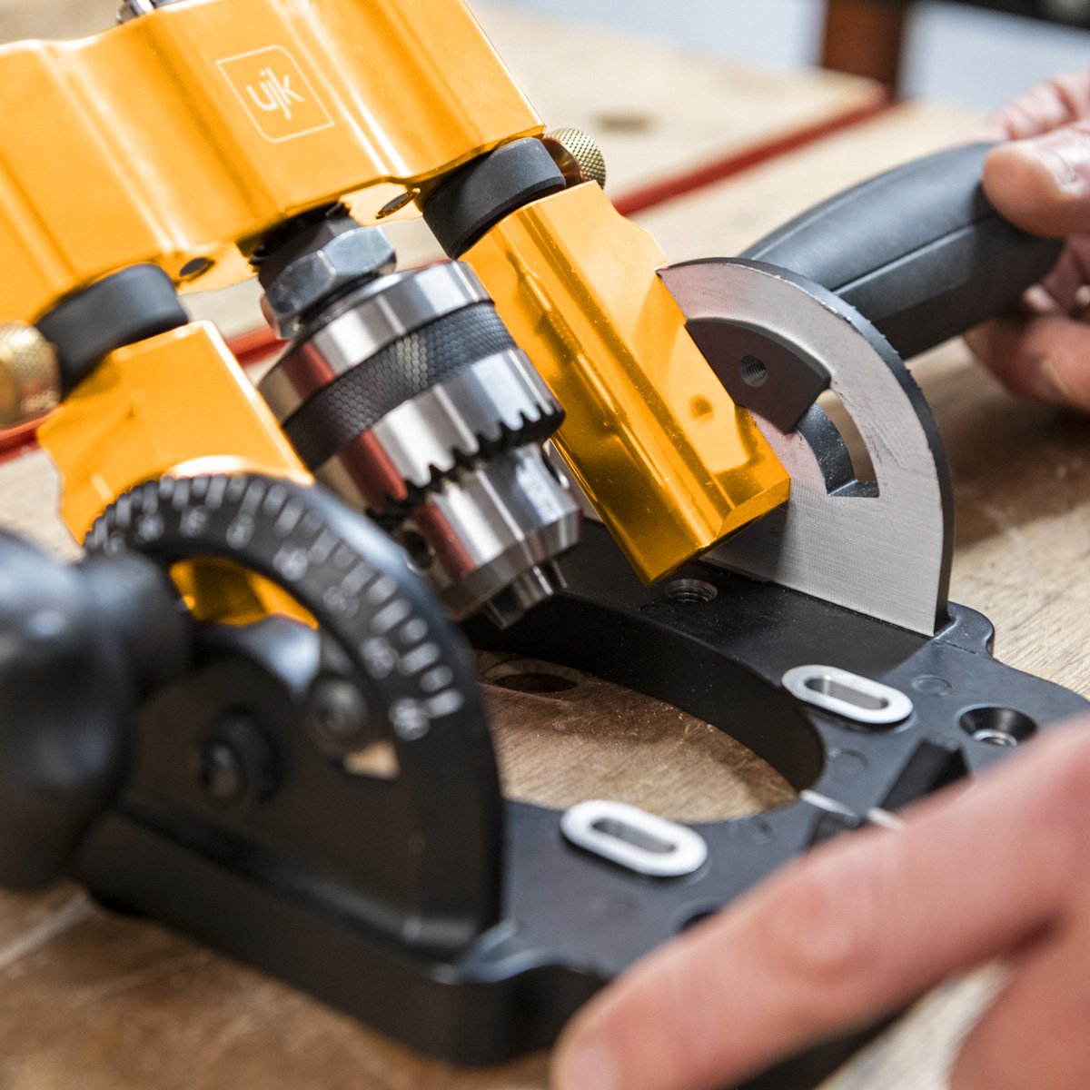 - The UJK Drill Guide comes with angle stops that allow the exact angle you want for repeating holes. This means less guessing and more accurate drilling, which saves you time and materials.