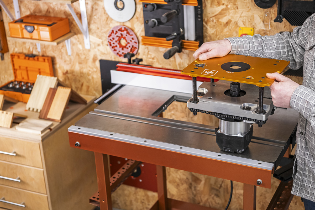 - With the UJK Router Lift (sold separately) it fits UJK Router tables and most router table set-ups (305 x 229 x 6mm)