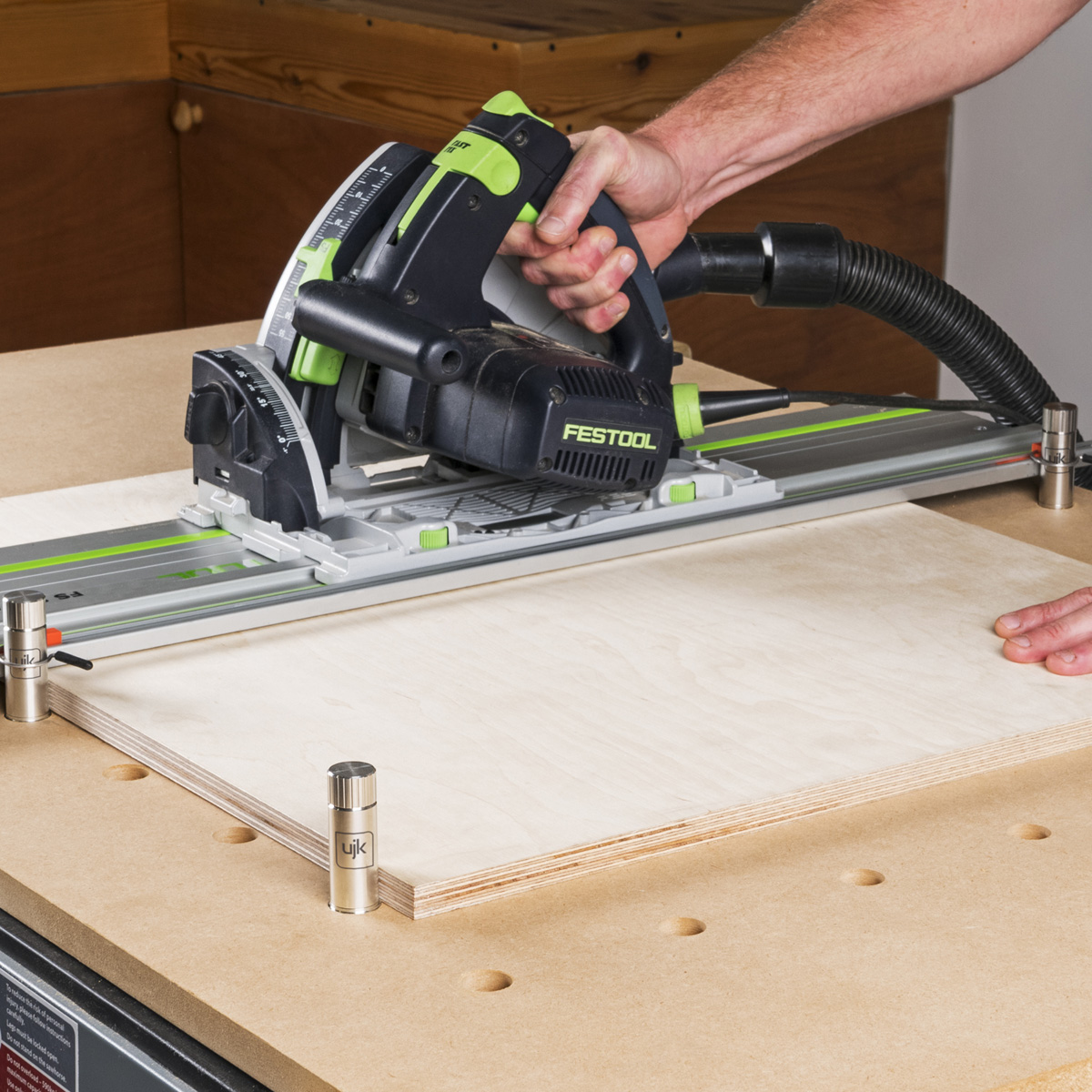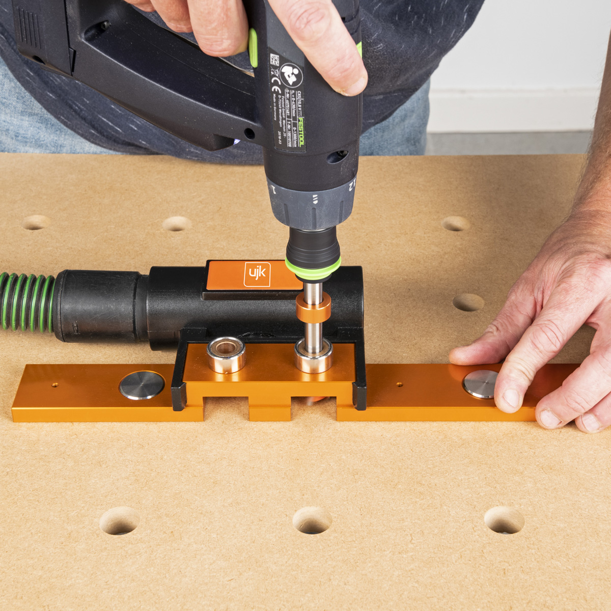 Use with UJK Super Dogs, a guide rail, and a track saw for flawless 45° and 90° cuts. Create tighter grids with 32mm or 46mm spacing for endless cutting, assembling, and clamping options.