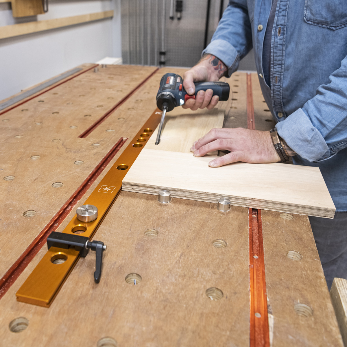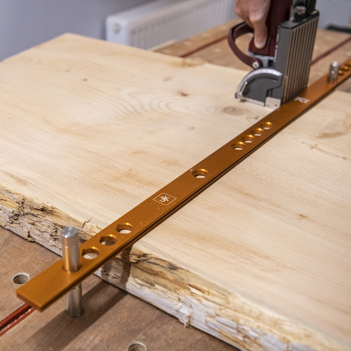 - This kit is designed to work with the UJK Parf Guide System, UJK multifunction worktops, and MFT benches, for cutting, marking, drilling, or assembling. The UJK Parf System Fence & Stop Kit ensures a steady workbench setup, removing the need to adjust bench dogs for different cut lengths. The adjustable stop delivers consistent, precise cuts, moving the fence by one hole, or 32mm, allows for quick marking or drilling changes, increasing efficiency and precision. Using two fences at a 90° angle assists in assembling cabinet frames or drawers. The fence can also be placed on top of a workpiece and includes a hole for 45° angle settings. British made for durability and precision. The fence is manufactured from anodised aluminium while the precision-engineered stops guarantee accuracy.
