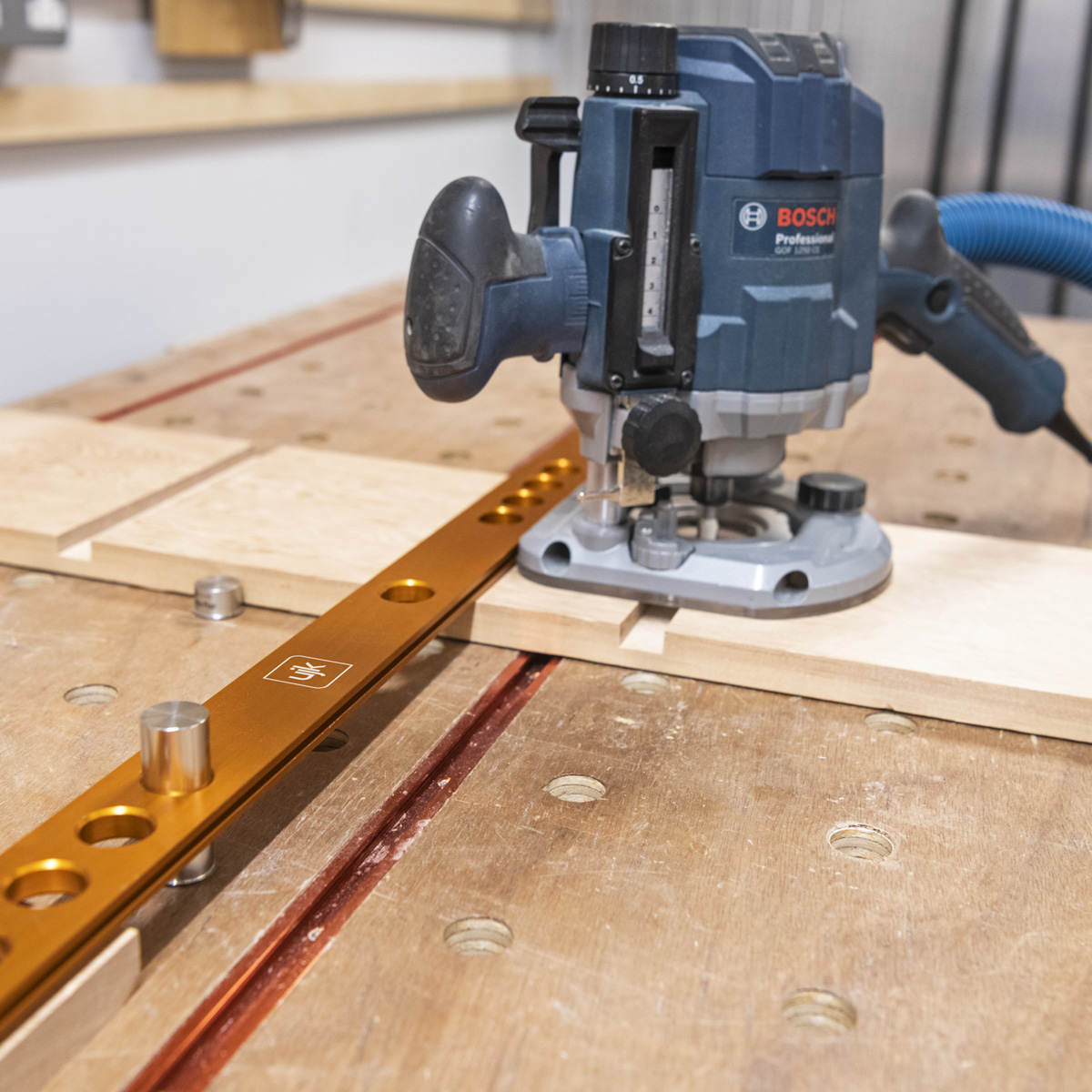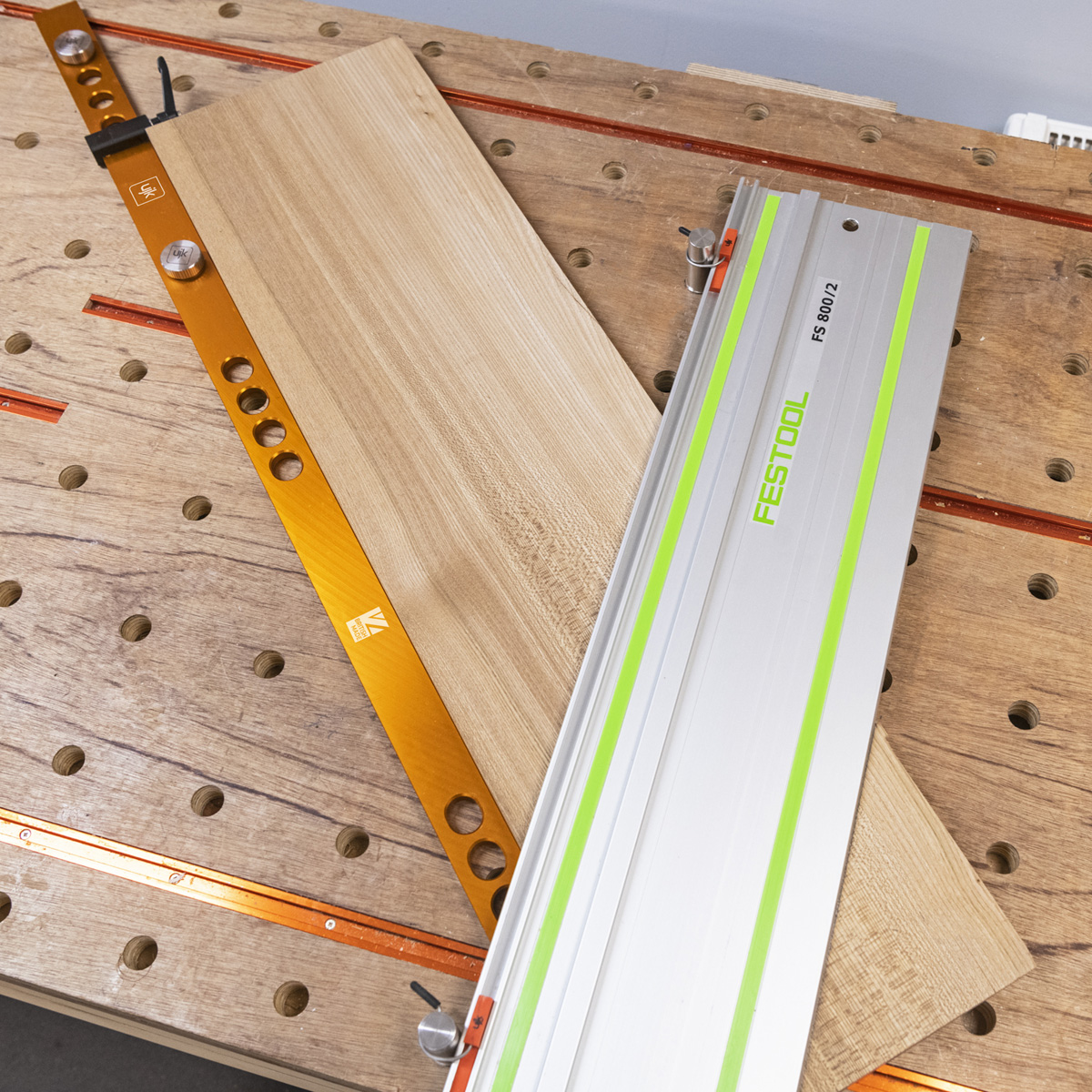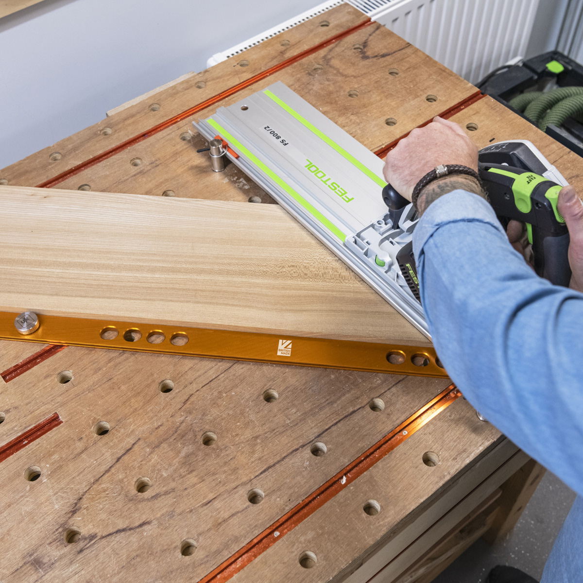 - The fence features dual sets of chamfered holes, 460mm apart and at 32mm centres, ensuring compatibility with System 32 for precise cabinet construction