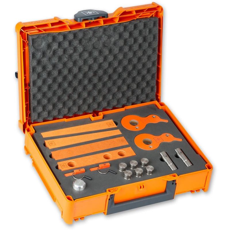 • Set includes, 4 x UJK Cam Clamps, 4 x UJK Wedges, 4 x UJK Back Stops, a pair of UJK Dog Rail Clips, 6 x UJK 12mm Guide Pups, 2 x UJK 50mm Guide Dogs and a UJK Chamfer Tool, stored in a T-LOC case