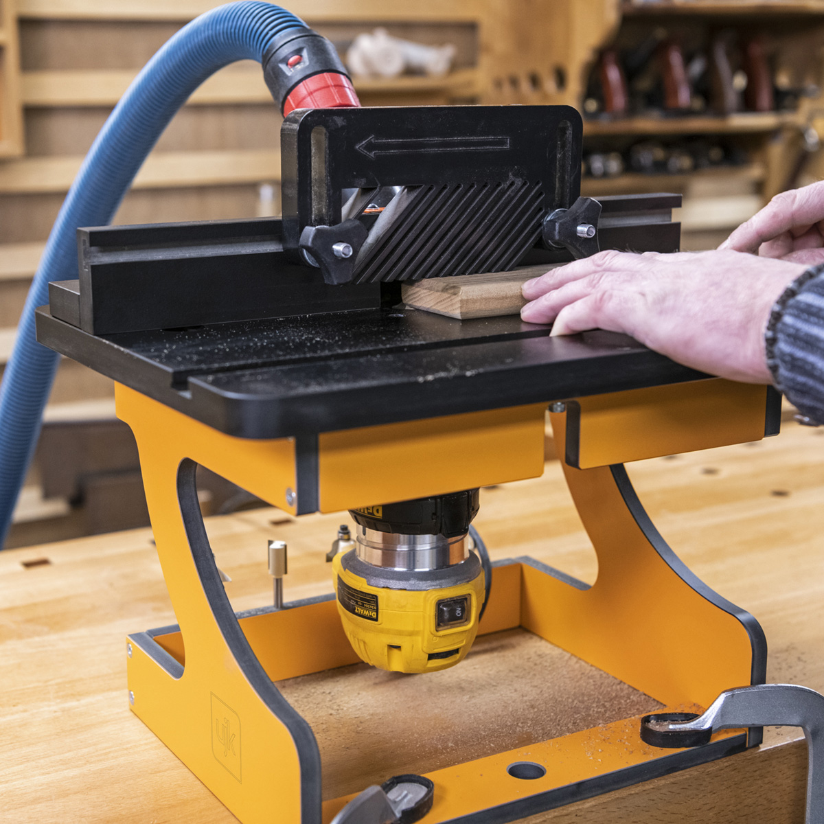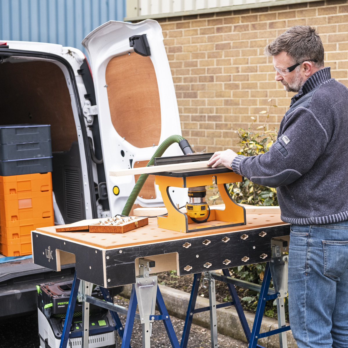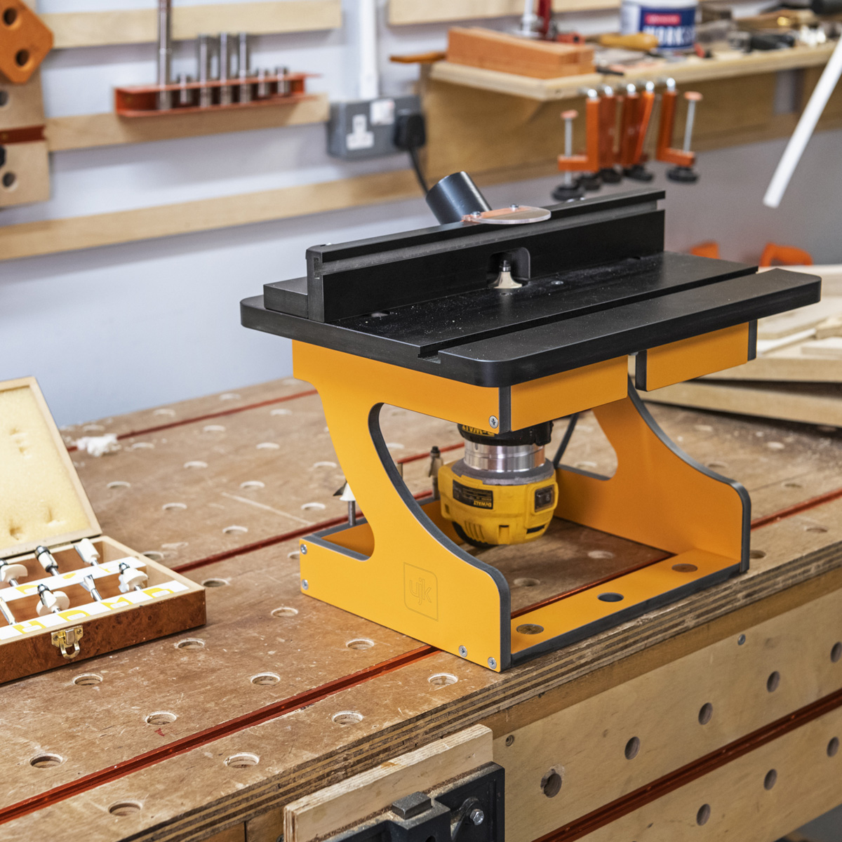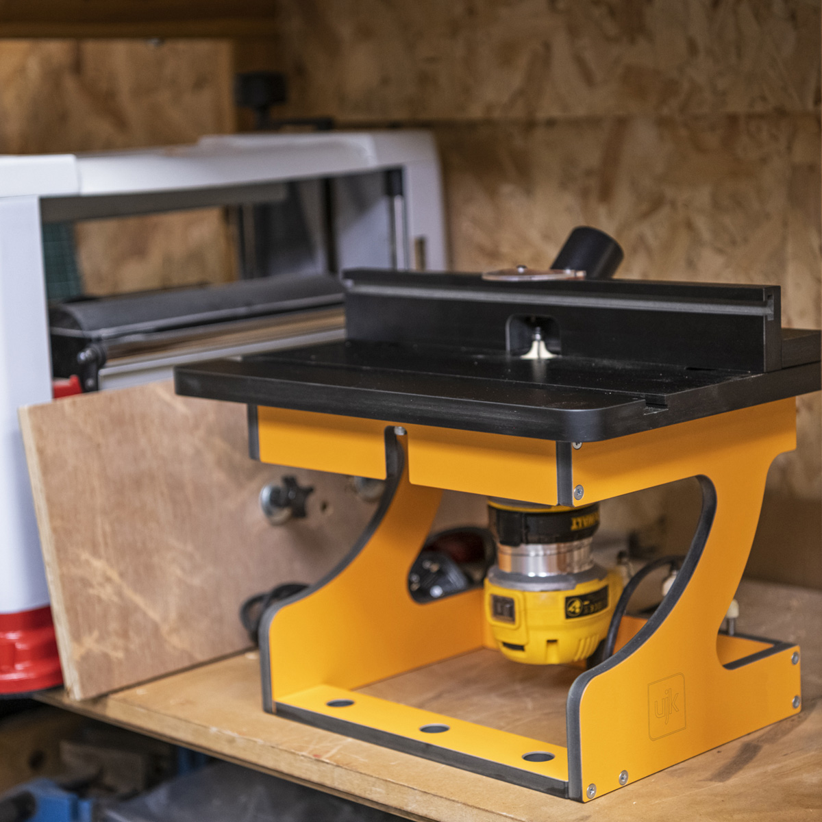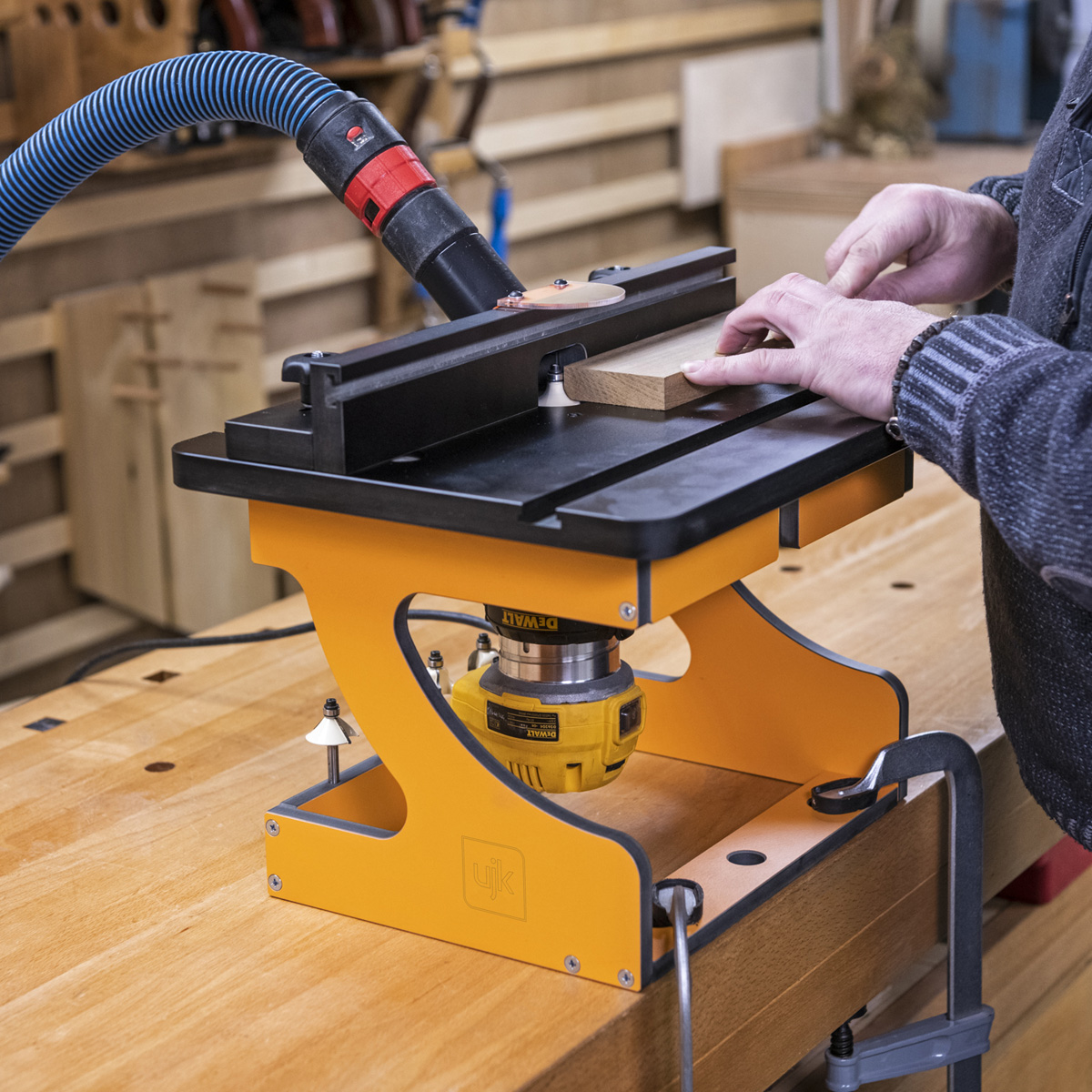 - UJK Portable Trim Router Table compact precision at your fingertips. The innovative UJK Portable Trim Router Table is designed specifically for 1/4" palm routers, and for woodworkers who value precision and portability. This table allows the accuracy and versatility of a full-size router table in a portable, benchtop format, allowing you to create intricate trim routing with unparalleled accuracy. Proudly British made, and manufactured from robust, durable materials ensures stability and durability.
