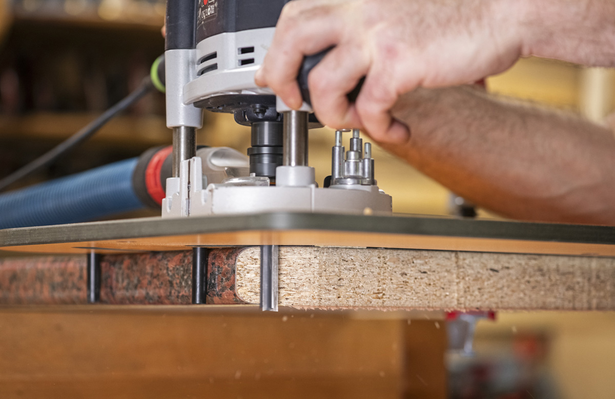 - Works seamlessly with natural timbers, hardwood, softwood, and faced material as well as man-made boards, plywood and kitchen worktops