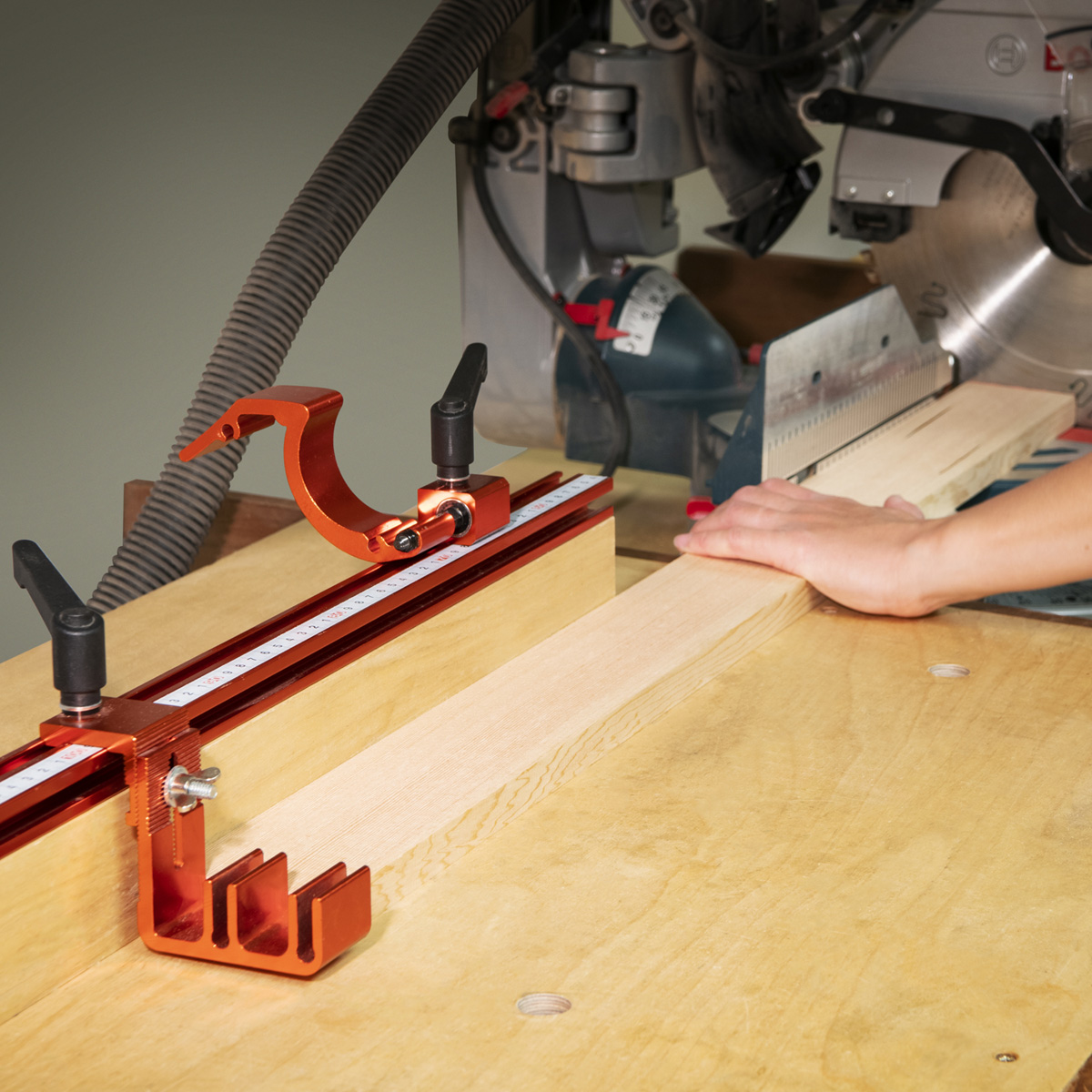 - The kit takes the guesswork out of repeat cutting of wood to length. You can use the kit with a mitre saw, radial arm saw or a drill press.