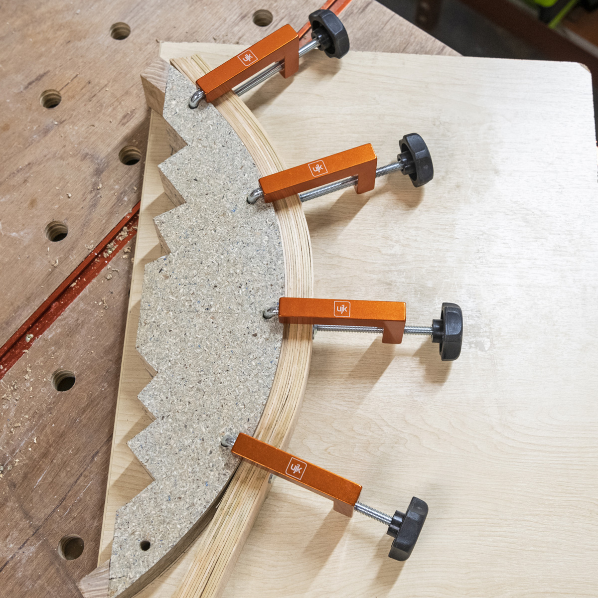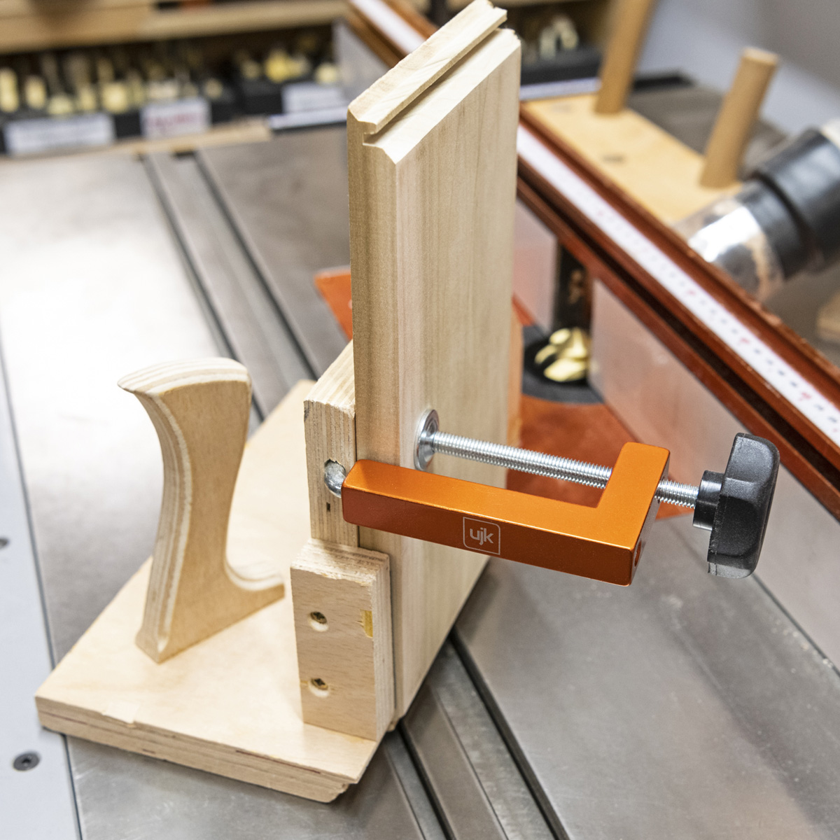 - Secure your sub fence with the UJK Universal Fence Clamps. These clever clamps allow you to attach a wooden sub-fence securely, leaving the face obstruction-free, ready for cutting. Simply drill an 8.5mm hole in the fence, and the clamps will hold the sub-fence in place. The 16mm square section anodised aluminium body and 7mm round steel bar ensures durability. The clamping screw is 80mm long. This gives the clamp a maximum capacity of just over 150mm, with a throat depth of 38mm.