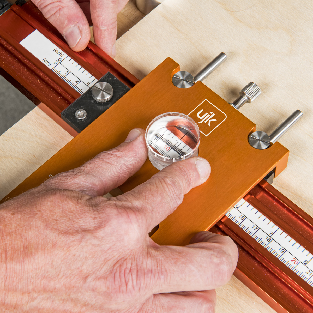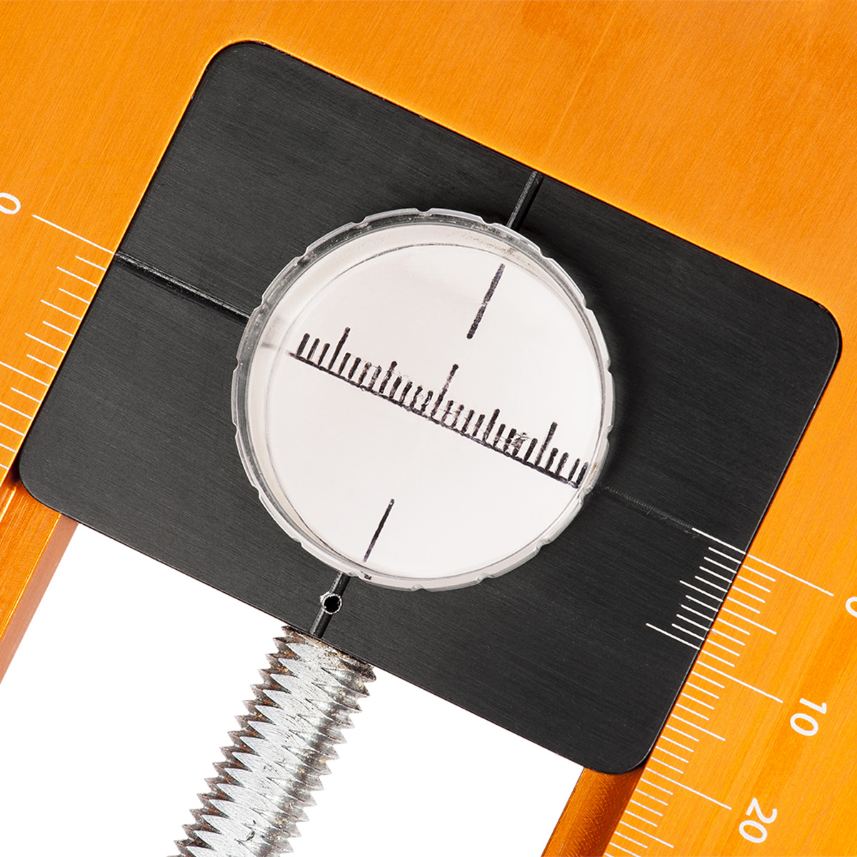 - A lens with a scale and cross hairs allow you to position the jig precisely both in relation to the scale on the Progrip clamp and in relation to a line marked on your workpiece. For greater precision a vernier scale with a micro adjuster allows you to set the jig with an accuracy of 0.1mm. If you wish to cut a groove wider than the cutter, the scale and threaded adjustment provide the necessary control for the second pass. If after the first cut the groove is too narrow, you can always use the micro adjuster to shift it a smidgen for a second pass.