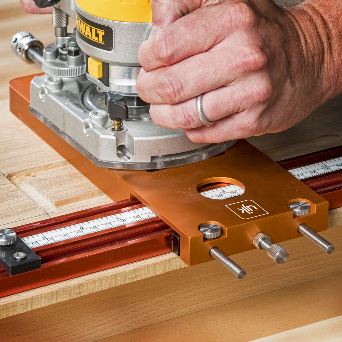 - Primarily designed for use with a UJK Progrip Clamp, the UJK Precision Grooving Jig offers unrivalled functionality. It will run on any suitable straight edge between 10mm and 16mm thick and 45mm to 55mm wide. The only other equipment required is a router fitted with a 30mm guide bush. We recommend using 101875. After setting up the jig, the router and guide bush fit into the 30mm aperture and cutting can proceed.