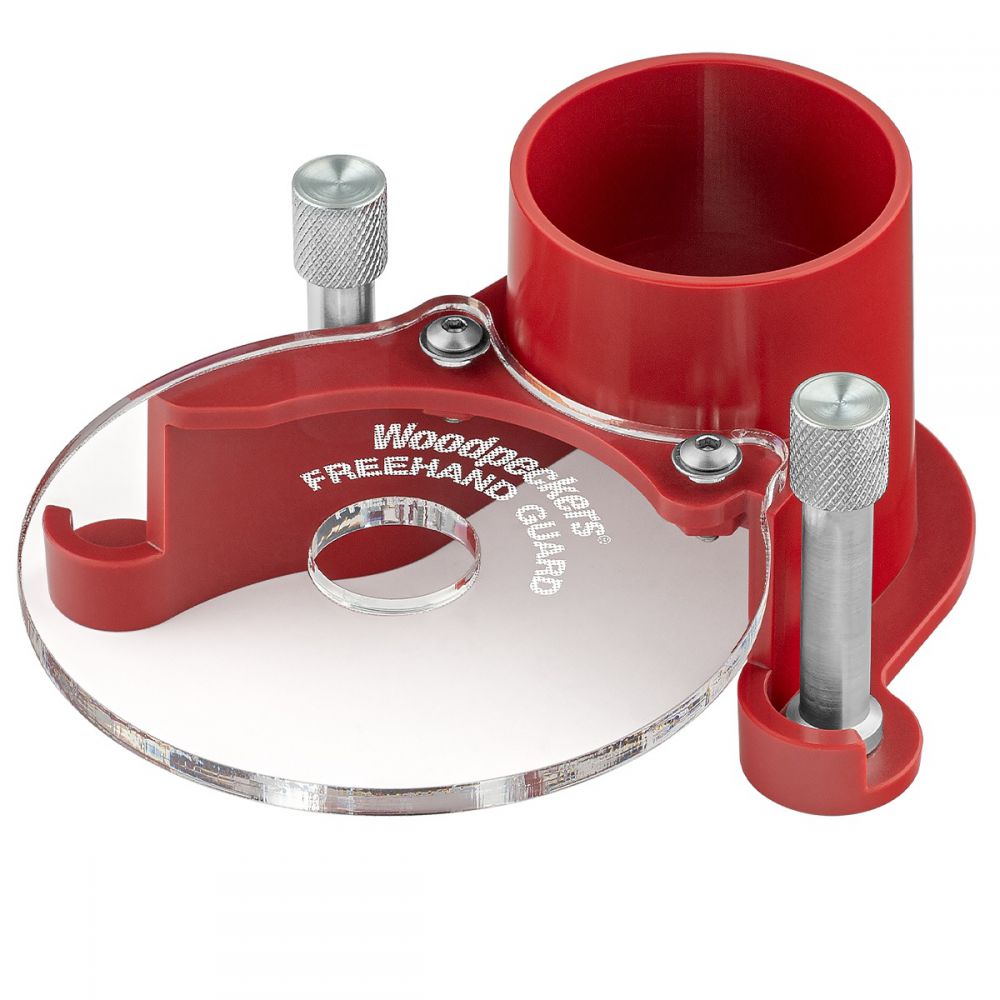 - Woodpeckers new and improved Freehand Guard covers the router bit, provides 2 starting fulcrum points and eliminates over 90% of the chips created while routing curved edges with your router table. When you're working curved shapes on your router table, the fence is just going to be in the way. Instead of working with a fully exposed bit, add the Freehand Guard to work safer and cleaner.